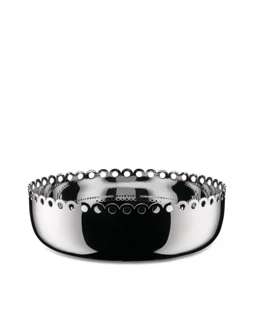 La corbeille Edges (réf. ITM07/21) de Alessi, imaginée par la designer slovène Nika Zupanc, est un chef-d’œuvre de finesse et de modernité. Réalisée en acier inoxydable poli miroir, elle séduit par ses bords ajourés délicatement ciselés, rappelant la dentelle ou les ornements des objets précieux d’autrefois.