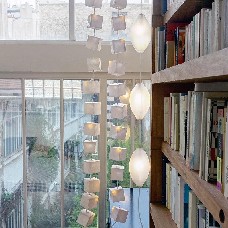 La guirlande Cubiste de la maison parisienne Tsé & Tsé est une création lumineuse et décorative, pensée comme une farandole de petits cubes de papier suspendus sur un fil, qui diffusent une lumière douce et chaleureuse.